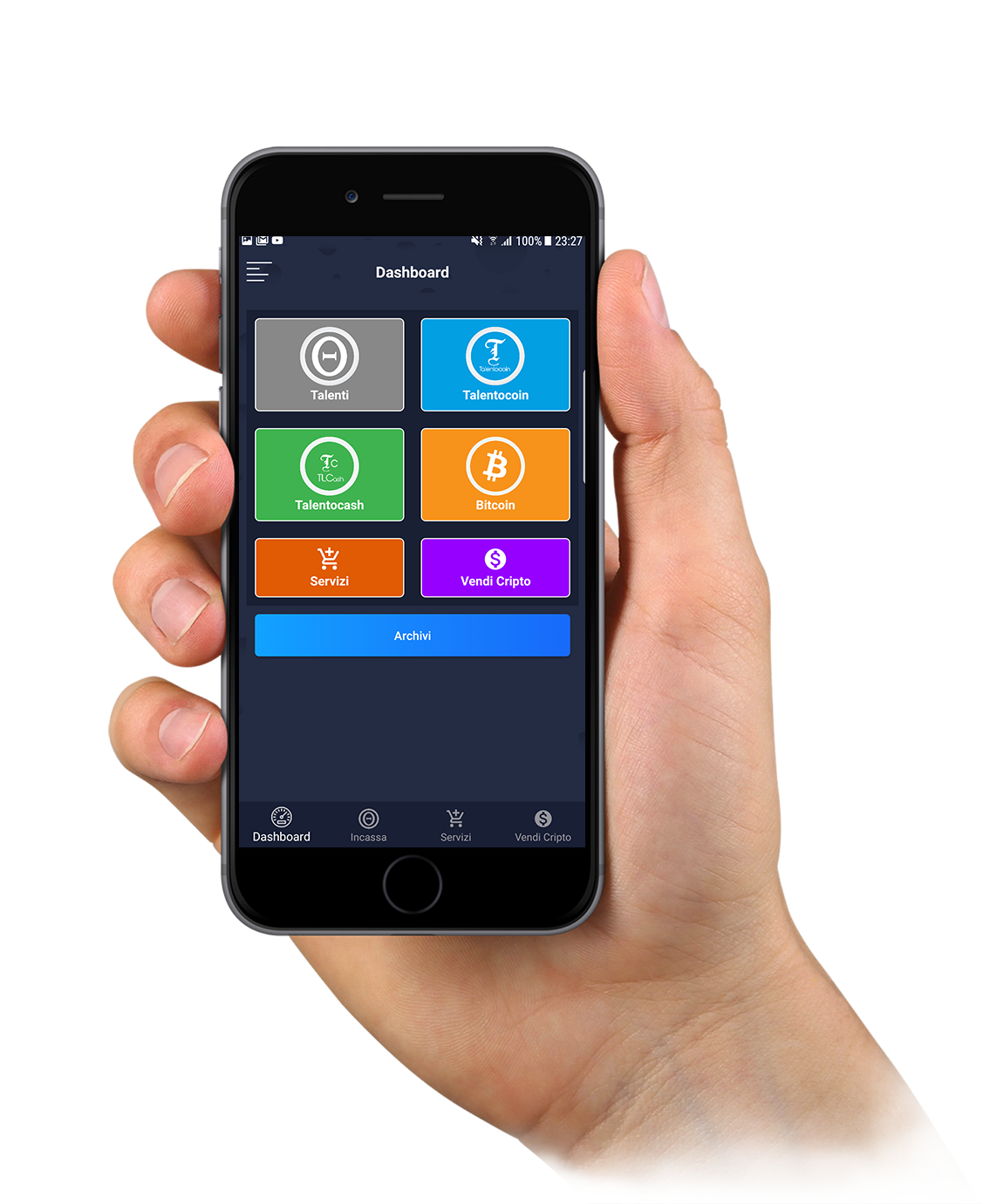 Per accreditare ed accettare pagamenti in Θ talenti o in Token(Crediti) potrai scegliere di utilizzare lo strumento a te più consono. Oltre l’App Negozio Talento sono disponibili strumenti software ed hardware dedicati.